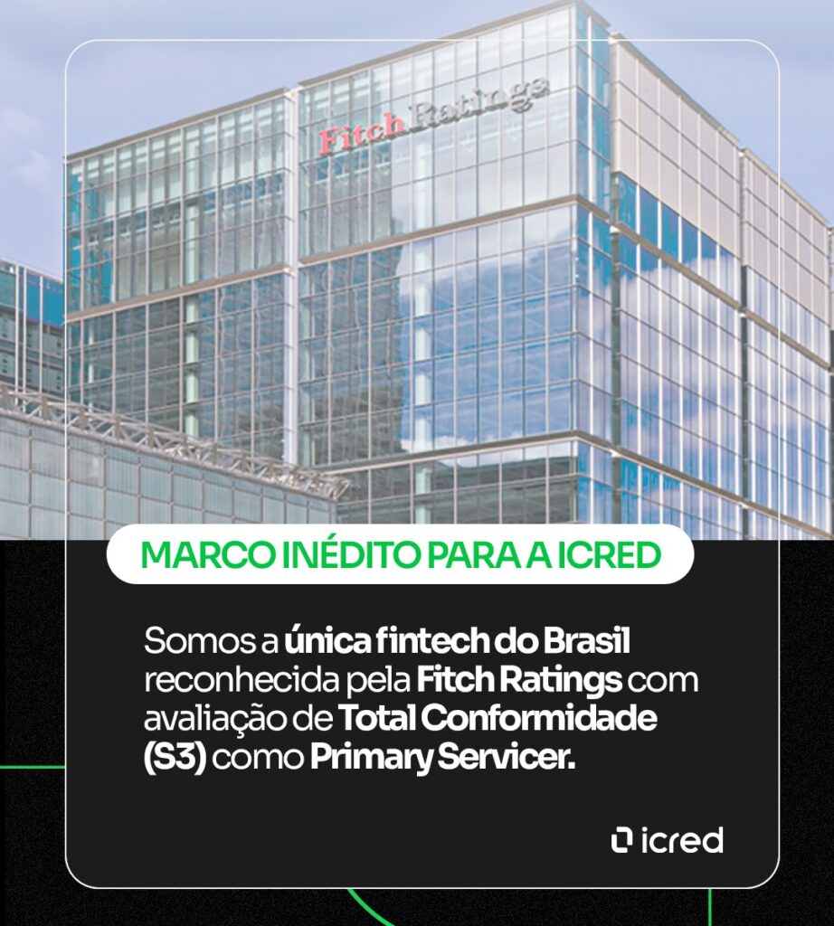 Ser a única fintech brasileira com Primary Servicer Rating da Fitch Ratings reforça que a iCred construiu uma operação sólida, confiável e preparada para atuar no mercado de crédito estruturado.